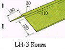 Коньковая планка LH3монтируется только после полной установки и крепежа всех кровельных листов. Не забудьте закрепить уплотнительную ленту под конек. Все шурупы и уплотнительная лента должны накрываться коньковой планкой. Коньковая планка крепится на каждой второй профильной волне шурупами, а торцы к коньку крепятся или шурупами или заклепками.