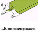 Чтобы избежать скатывания снега над входом, мы рекомендуем установить на крыше снегозадержатель LE. Eго крепят под вторым поперечным рисунком от карниза, т. е. с расстоянием около 350 мм от карниза. Крепление устанавливается под снегозадержатель на профиле, и крепится сквозь лист к обрешетке большим шурупом. Нижний край снегозадержателя крепится к профильному листу по каждой второй волне шурупами обычного размера.