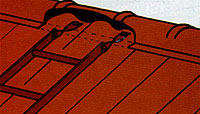 На крыше лестницы крепятся шурупами сквозь кровельный лист к обрешетке. При необходимости лестницу на крыше можно соединить и с настенной лестницей у основания поручней.