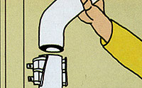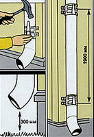 Часть трубы между коленами можно легко отпилить до нужного размера. Место соединения колена и водосточной трубы надежно крепится к стене.