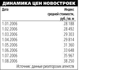 Екатеринбург — За январь — июль 2006 г. цены на первичном рынке выросли на 38%. За весь прошлый год они поднялись всего на 18%. Основные причины роста — все увеличивающийся спрос, темпы роста которого превышают темпы ввода новостроек, и неработающие нормы нового законодательства по предоставлению земельных участков под застройку.