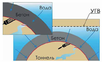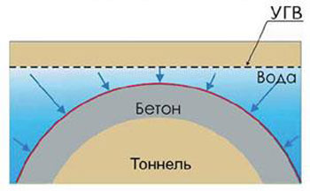 Если в приложении №2 речь идет о водонепроницаемости и морозостойкости непосредственно самого гидроизоляционного материала, более того – о прочности и адгезии этого материала к бетонной поверхности, а не о повышении эксплуатационных свойств обрабатываемого бетона, то это – материал поверхностного типа. При механическом повреждении нанесенного материала его гидроизоляционные свойства пропадут. Поверхностные гидроизоляционные материалы на цементном вяжущем подразделяются на обмазочные и штукатурные. Эти материалы применяются не только по бетону, но и по кирпичным, каменным и другим поверхностям. Обмазочные обычно имеют расход от 1,5 до 2 кг на 1 м2 и наносятся кистью, а штукатурные – более 2 кг, они наносятся с помощью шпателя. Поверхностные материалы применяются только со стороны давления воды, т.к. при устройстве гидроизоляции против давления материал отслоится, как только давление воды превысит его прочность сцепления с бетоном или прочность бетона на разрыв. Материалы поверхностного типа создают на поверхности защищаемой конструкции водонепроницаемый барьер, не улучшая при этом физико-механические свойства бетона. И если этот барьер находится на поверхности обратной гидростатическому воздействию проблема коррозии и морозостойкости бетона остается без изменений, хотя с одной стороны, возни.кает иллюзия 100% гидроизоляции, а с другой стороны – сооружение продолжает разрушатся.