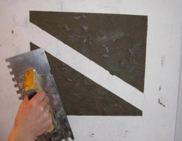 Основой для покрытия обычно служит плиточный клей или гипсовая штукатурка типа "Ротбанд" или "Теплон". Поверх штукатурки наносится водоэмульсионная краска.