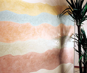 Фирма «Хагери-М» (Hageri-M) представляет в столице продукцию германского завода «Егер» (Jaeger), специалисты которого разработали даже оформительскую программу под названием «Вилла-Венеция», превращая вашу невзрачную и стандартную недвижимость в роскошное жилище в стиле «итальянский дворец Дожей». Она очень дорогая, и даже состоятельный человек вряд ли сможет оплатить всю стену. А вот сделать фрагмент на стене, как бы панно или картину, смогут позволить себе многие. Но, увы, изысканное покрытие этой фирмы очень нежное, совершенно не стойко к механическим повреждениям и к воздействию влаги и сырости.