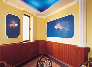 Фирма «Декорум-Ф» работает на нашем рынке 5 лет и представляет продукцию итальянского завода «Вальпэйнт» (Valpaint). Выбор материалов, предлагаемых фирмой, чрезвычайно богат. В их числе, «Rococo», используемый при создании венецианской штукатурки. Специалисты «Декорум-Ф», которые учились матерству у итальянцев, сохранив общий принцип нанесения венецианской штукатурки, добавили в технику исполнения свои «фирменные» штрихи, что позволяет им создавать оригинальные и неповторимые цвета.