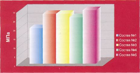 Применение различных видов суперпластификаторов в составах сухихстроительных смесей при одинаковом водоцементном отношении способствует увеличению подвижности строительных растворов по сравнению с контрольным составом без супер пластификатора. Однако стечением времени данный эффект уменьшается или происходит его полное прекращение (табл.1).Различная продолжительность пластифицирующего эффекта при прочих равных условиях зависит в первую очередь от строения молекул различных суперпластификаторов и их принципов действия. Применительно к изменению прочностных характеристик, сравним прочность на сжатие строительных растворов с использованием суперпластификаторов различных видов и контрольного образца без суперпластификатора при равной подвижности строительного раствора равной 28 см.