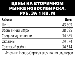 Аналитики Новосибирской ассоциации риэлторов (НАР) утверждают, что средняя стоимость 1 кв. м достигла к сентябрю 35 200 руб., увеличившись с начала года на 35,7%. По их данным, ежемесячно цены росли примерно на 5%, в августе поднялись на 6%, а в сентябре квартиры подорожали уже на 7,5%. “Квартиры в центре продавались в сентябре по 43 000 руб. за 1 кв. м, вдоль линии метро уходили по 37 000 руб., а на окраинах предлагались примерно по 29 000 руб.”, — приводит примеры представитель НАР Светлана Лобанова. Больше всего, по данным НАР, подорожали квартиры в Академгородке, престижной окраине Новосибирска. С начала года однокомнатные квартиры здесь выросли в цене на 42%, двухкомнатные — на 27%, трехкомнатные — на 22%.