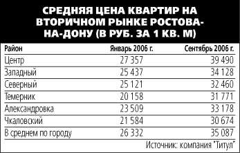 Ростов-на-Дону — Начиная с лета 2006 г. все внимание платежеспособных ростовчан было отдано вторичному рынку. Новостроек в городе мало, их приобретение по-прежнему ассоциируется у покупателей с неоправданным риском. Увеличение спроса привело к росту цен: за июль — август вторичные квартиры в Ростове в зависимости от качественных характеристик и месторасположения подорожали минимум на 13%.