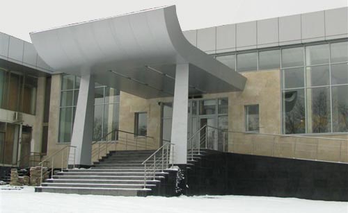 Рассмотрим "типовую" облицовку фасада здания натуральным камнем на примере одной из работ выполненной нашей компанией, что называется "под ключ". Работа с Заказчиком началась со встречи на строительной площадке. Архитектор показывает чертежи проекта, а наш сотрудник подбирает образцы гранита для согласования. Перед исполнителем стоит не простая задача: надо предложить именно тот материал, который имеется в нужном количестве и в необходимых размерах на складе фирмы, так как Заказчик ставит "жесткие" сроки и время на изготовление и поставку нет. Ассортимент необходимых изделий тоже широк: это гранит для облицовки цоколя (согласован черный габбро-диабаз), термообработанный (шершавый) гранит на площадки и ступени ("Покостовский"), полированный гранит для подступенков. На фасад удачно подошел кавказский доломит "Геналдон" в плитах 400х600х30мм, лощеной фактуры.
