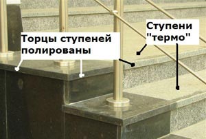 Торцы ступеней и подступенков обязательно полируются. Это пригодится для "чистой" эксплуатации. Полированный гранит не пачкается и легко протирается.