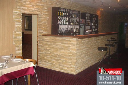 Одними из первых декоративные возможности искусственного камня оценили владельцы ресторанов и кафе. На западе, люди приходят в ресторан просто поесть. Поэтому украшение интерьера там не считают первейшей необходимостью, главное для них - еда. У нас, конечно, приготовлению и поглощению пищи тоже придается большое значение, но для русского человека поход в ресторан – событие. Мы ходим туда, как в театр: себя показать и людей посмотреть. Каждый из сегодняшних владельцев ресторанов применяет различные ходы и концепции, создавая своего рода театральную декорацию. Все это делается для того, чтобы привлечь как можно большее количество людей, сделать свое заведение местом общения, встреч и переговоров.