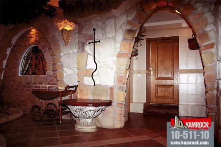 Интерьер настоящего винного погреба требует отделки. Голые бетонные стены в таком престижном месте - безусловный моветон. Исторически сложилось, что стены винных погребов должны быть деревянными, либо каменными. Но деревянная обшивка нуждается в постоянном уходе, а природный камень не всегда удовлетворяет пожеланиям владельца: тяжел, громоздок и, зачастую, не красив, монтируется не на всякую поверхность и занимает много места. Однако именно каменная облицовка имеет особую привлекательность. Это своеобразная дань традициям: из камня выполнены стены винных погребов Италии, Испании, французских замков Бордо и Бургундии.