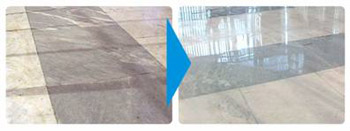 Основным врагом таких напольных покрытий является влага и песчинки, проще говоря грязь, поэтому для более длительного сохранения в первую очередь необходимо позаботиться об устройстве современных многоступенчатых систем грязезащиты на входах и в холлах зданий и офисов. Но и это не всегда спасает напольные покрытия от истираемости. В этом случае наша компания предлагает Клиентам провести процесс кристаллизации (ветрификации) мраморного пола.