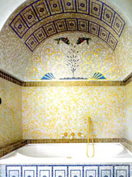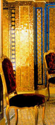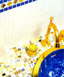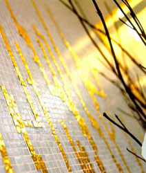 Золото и платина. Такой декор - бесспорный признак роскоши. Все фабрики, производящие мозаику, выпускают коллекции с желтым, белым золотом или платиной. Есть серии, в которых мозаику от начала до конца делают вручную, прокладывая между двумя слоями стекла настоящую золотую фольгу 99-й пробы. Очевидно, что и цена такого материала немалая - 2 евро за один сегмент (20х20 мм) или 3300 евро за 1 кв. м. Но выглядит она великолепно!