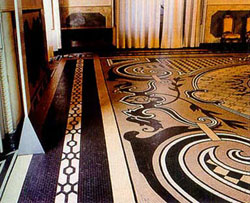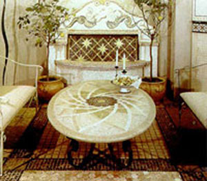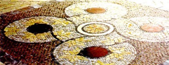 Каменная мозаика. В ее производстве используются самые разные породы камня, начиная с дешевого туфа и кончая редчайшими породами мрамора, оникса и яшмы. Цвет природного материала неповторим, игра структур необычна, поэтому каждое мозаичное изображение заведомо уникально. Камень можно оставить полированным, а можно "состарить" - тогда цвет будет более приглушенным, а края более гладкими. Выпускаются чипсы самой разной формы - от круглой до неправильной. Максимальный размер - 50 ? 50 мм (в основном такие элементы применяются вне помещений.