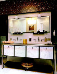 Металлизма довольно дорога: 1 кв. м - около $ 250-350. Но если использовать ее в качестве декора или для отделки небольших поверхностей, получится вариант "недорого и достойно" и при контролируемых затратах интерьер приобретет изюминку. Для отделки бассейнов существует специальная серия high tech из более коррозионно-стойкой "нержавейки". Производители не рекомендует использовать ее для облицовки поверхностей, находящихся на улице.