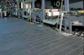 Фабрика Agrob Buchtal немецкого концерна Deutsche Steinzeug серийно выпускает две линии антистатических продуктов. Eladuct - это неглазурованная плитка из каменной массы, рецептура которой составлена таким образом, что ее сопротивление R A не превышает 10^6 Ом. Естественно, что неглазурованная поверхность особенно предпочтительна в ситуациях, когда в помещениях предусматривается движение тележек или погрузчиков, чьи колеса могли бы оставить царапины на глазурованных поверхностях. Кроме того, неглазурованная плитка более стойка к агрессивному воздействию химических агентов. Типичные ситуации для применения такой плитки включают производство лаков и красок, нефтеперегонные заводы, электронные производства, типографии. KerAion ELA 10.6 - это глазурованная плитка из стандартной линии продуктов KerAion . Ее антистатические свойства обеспечиваются применением специальной глазури, электрическое сопротивление которого R A опять-таки не превышает 10^6 Ом. Глазурованная поверхность особенно легко моется, поэтому такая плитка успешно используется в медицинских учреждениях, в лабораториях, в помещениях где эксплуатируется телекоммуникационное оборудование. Технология укладки в общих чертах не вызывает трудностей. В слой специального токопроводящего клея для плитки (его электропроводность обеспечивается присутствием в массе графитового порошка) укладывается сетка заземления из тонкой медной полосы. В случае неглазурованного материала Eladuct, когда статическое электричеств стекает в слой клей/шина заземления по черепку самой плитки, можно воспользоваться стандартными затирками. В случае же глазурованного материала KerAion ELA 10.6 , статическое электричество с поверхности токопроводящей глазури отводится в слой клей/шина заземления через специальную токопроводящую затирку.