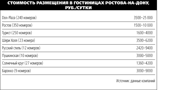“Мини-отели помогают разгрузить крупные гостиницы, но их номерного фонда все же недостаточно, особенно если предположить, что деловой туризм будет развиваться”, — считает Овчинников. “Отелей с качественным набором услуг для Ростова маловато, — соглашается Куценко. — Пока ниша недостаточно заполнена, и можно ожидать прихода инвесторов”.