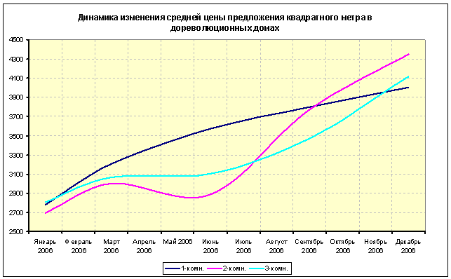 При этом, если год назад дороже всего был квадратный метр в трехкомнатной квартире, то в конце 2006 года наиболее дорогим был квадратный метр в двухкомнатной квартире (прирост почти 70%)