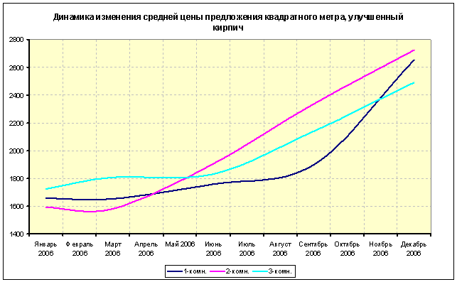 Усредненный квадратный метр в сегменте рынка «улучшенный кирпич» за 2006 год подорожал на 63,2%
