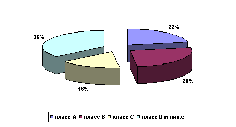 Рисунок. Распределение складских площадей Московского региона по классам, %.