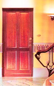 “Массивные” двери Массивом в настоящее время называют такие элементы дверного полотна, которые изготовлены со сплошным заполнением из натуральной древесины. Чаще всего массивные элементы дверей изготавливаются из клееного массива - эта технология является наиболее современной и к тому же более дешевой, чем классическая, в которой каждый элемент изготавливается из цельного куска дерева. Схемы соединения брусков в клееном массиве могут быть самыми различными - каждый производитель тут ищет свой оптимальный вариант, который был бы технологичным и, в то же время, придавал бы всей конструкции необходимую жесткость. Использование в конструкции массивных деревянных частей вносит свои нюансы и в эксплуатационные свойства - такие двери очень чутко реагируют на изменение влажности в помещении. Поэтому производитель вынужден оставлять специальные пазы для компенсации температурного и влажностного расширения или сжатия при установке филенок, то есть их никогда не закрепляют жестко, оставляя возможность для люфта. Такая вынужденная схема сборки не может не вносить своих особенностей во внешний вид дверей. Во-первых, различные участки дверной поверхности могут несколько отличаться друг от друга по цвету, что связано как с углом отражения света, так и с невозможностью точно подобрать детали двери по цвету на стадии изготовления. Окончательный же цвет дерево приобретает только после лакировки. Но зато именно эта неравномерность цвета поверхности придает дверям из натурального дерева свою "изюминку" и в то же время подчеркивает, что перед Вами дверь из массива натурального дерева, а не её имитация. Во-вторых, при значительной усушке, филенки могут на столько изменить свои размеры ("усохнуть"), что по краям станут видны непрокрашенные полосы (окраску-то дверь получает уже в собранном виде). Появление таких "полос" определяются, отнюдь, не низким качеством дверей, а просто несоответствием микроклимата жилого помещениях тем "климатическим" параметрам эксплуатации, на которые рассчитывалась дверь при своем создании. Следует отметить, что крупные фирмы, торгующие дверями, держат для таких случаев в своем штате специалистов, которые проводят необходимые работы непосредственно на дому у клиента. Мелкие фирмы, не имея таких специалистов, могут "предложить" клиенту решить эту проблему, что называется, "собственными силами". Качество дверей из массива определяется в первую очередь подготовкой исходного сырья - временем и технологией сушки, а так же технологией склейки массива (качество клея, температура, давление). Во вторую очередь финишным покрытием (качеством лака, количеством слоев). Как правило, двери из массива натурального дерева покрывают лаком. Такое покрытие, кроме декоративной функции, имеет большой практический смысл - оно препятствует как проникновению атмосферной влаги в древесину дверного полотна, так и обратному процессу, вызывающему упомянутое выше пересыхание дерева. Качественное лаковое покрытие должно быть эластично. Для изготовления массивных дверей применяются следующие породы деревьев: дуб, различные породы красного дерева, сосна, бук, орех, вишня и некоторые другие. Пожалуй, наиболее распространенными являются двери из массива сосны (что вполне объяснимо относительной дешевизной материала). Они имеют разн