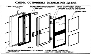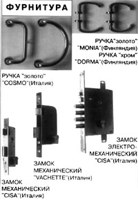 Габариты базовых моделей: 2085х900 мм и 2385х900 мм. Все модели могут быть выполнены в двухстворчатом варианте. Каркас дверей выполняется из алюминиевого профиля, бронированного сталью. Декоративная отделка профиля - порошковая эмаль. Класс защиты: брони до 3 класса (АКМ. Пуля ПС-4З ОБ\СС) По ГОСТ Р50744-95, Бронестекла до В03 (АКМ, Пуля ПС-43 ОБ\СС) по РД 78.149.94. Бронестекло: 29,30,48мм, безосколочное, прозрачное или тонированное. Двери имеют двойной притвор и двойное резиновое уплотнение. Петли с шариковой опорой и пассивные ригели. Двери комплектуются соответствующей фурнитурой и замками (фото справа). Возможна установка замков с системой дистанционного управления или системой санкционированного доступа. На основе базовых моделей разработаны более 20 различных модификаций. В общем двери серьезные, точнее профессиональные. В качестве комплексной услуги заказчику предлагаются автоматические контрольно-пропускные шлюзы (на базе четырех одностворчатых дверей), бронированные приемопередаточные узлы (для пунктов обмена валюты, кассовых узлов и постов охраны) и сдвижные двери с автоматическим приводом. Стоимость бронированных дверей зависит от класса защиты и колеблется в следующих пределах: Стеклянные двери (типа М-025012)- 1236-1440$; Стеклянные двери (типа М-02513)-1440-3600$; Комбинированные двери (типа М-02512) - 2000-3000$; Металлические двери (типа М-02511) - 1668-2300$.