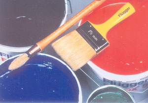 О бедном гусаре замолвите слово... Любая краска состоит из пигмента и связующего материала. Пигменты - это тонкомолотые порошки минерального происхождения. Они не растворяются в воде, масле и растворителе. Именно поэтому перед применением краску надо тщательно перемешать, так как пигмент оседает, а сверху остается чистый слой связующего материала. Масляные краски изготавливаются на основе искусственной или натуральной олифы. Сначала размешивается тот пигмент, которого больше всего в колере, а потом добавляются остальные. Затем краска разбавляется до нужной густоты. Для улучшения качества краска перетирается на краскотере. Масляные краски считаются самыми прочными и долговечными, в оределенной ситуации они могут применяться как для внутренней, так и наружной отделки. Различают густотертые (разводимые перед употреблением олифами в количестве 17-40%) и готовые к употреблению масляные краски. Как мы уже сказали, связующим для масляной краски служат олифы, получаемые в основном из растительных масел. Этот вид связующего известен человечеству, пожалуй, наиболее давно. По внешнему виду олифы - прозрачные жидкости, окрашенные в темно-коричневый или светло-коричневый цвета. Олифы классифицируют по составу и назначению. По составу различают 3 группы - масляные, алкидные и прочие. Масляные олифы в свою очередь подразделяются на натуральные, комбинированные и олифы "Оксоль". Натуральные олифы получают специальной обработкой высыхающих растительных масел - льняного, конопляного, путем их обработки (варки) при температуре 150°С. Они содержат 100 % высыхающего масла (льняного, конопляного) без растворителя. Комбинированная олифа содержит 30 % растворителя и 70 % масла (смеси высыхающей и 45 % растворителя, 55 % масла. Обработанное таким образом масло приобретает способность твердеть (высыхать). Точнее было бы назвать процесс их твердения полимеризацией, в процессе которой происходит набор прочности и твердости пленки. Процесс высыхания может быть ускорен путем введения в состав краски уже упоминавшихся ускорителей отвердевания - сиккативов (2-4% об.). Подсолнечная олифа высыхает медленнее, чем льняная и конопляная. Пленка подсолнечной олифы эластична, но твердость, прочность и водостойкость меньше, чем у пленок льняной или конопляной олифы. Натуральные олифы предназначены для изготовления густотертых и красок, готовых к применению для наружных и внутренних работ. Комбинированные олифы и олифы "оксоль" получают из уплотненных растительных масел путем специальной химической обработки их и разбавлением до 45% летучими растворителями. Оксидированные олифы оксоли получаются окислением нагретого подсолнечного масла при длительном пропускании воздуха в присутствии катализаторов (масло при этом окисляется и густеет). При добавлении к такому загустевшему маслу растворителя (например, уайт-спирита) получается прозрачный продукт с нормальной вязкостью. Процесс "высыхания" таких олиф происходит как вследствие испарения растворителя, так и в результате процессов взаимодействия масел с кислородом воздуха. Комбинированные олифы марок К3, К5 предназначены для производства красок для наружных и внутренних работ. Комбинированные олифы марок К2, К4, К12, К11, для красок, применяемых только для внутренних работ. Олифа "Оксоль В" применяют для разведения до