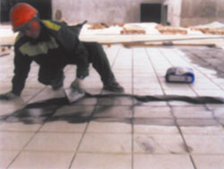 Нанесение раствора на основу выполняют гладким шпателем, а затем распространяют по поверхности зубчатым шпателем. Размеры зубцов шпателя определяются размерами плитки: