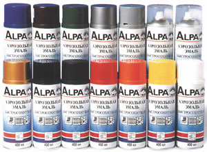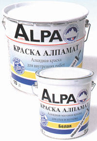Полуматовая эмаль предназначена для нанесения как на внутренние, так и для внешние поверхности. Обладает хорошей стойкостью к ультрафиолетовым лучам и атмосферным воздействиям. Моется мягкими моющими средствами. (Плотность - 1,55 кг/л. Сухой остаток - 82,3%. Блеск - 20-25. Степень непрозрачности - 96,5%. Оптовая цена - от $ 4,6/л.) Глянцевая эмаль предназначена для нанесения как на внутренние, так и для внешние поверхности. Обладает хорошей стойкостью к ультрафиолетовым лучам и атмосферным воздействиям. Моется мягкими моющими средствами. (Плотность - 1,16 кг/л. Сухой остаток - 68,8%. Блеск - 85 минимально. Степень непрозрачности - 97,5%. Оптовая цена от $ 4,0/л.) Полуматовая эмаль специально для радиаторов отопления. В её основе есть специальная формула, благодаря которой эмаль обладает хорошей стойкостью к высокой температуре (спокойно выдерживает нагрев до 100°С со временем не желтеет. Моется мягкими моющими средствами. (Плотность - 1,55 кг/л. Сухой остаток - 82,3%. Блеск - 20-25. Степень непрозрачности - 96,5%. Оптовая цена от $ 4,6 /л.) При работе с эмалями возникает множество случаев, когда затруднено или невозможно использование кисти - например при сложных формах поверхности. Для таких случаев в гамме «ALPA» предусмотрена АЭРОЗОЛЬНАЯ ЭМАЛЬ. Она применяется для окрашивания любых внутренних и наружных поверхностей (дерево, металл и т.д.). Кроме случаев затрудненного доступа, эмаль незаменима и в случаях, когда необходимо особенно тщательно отделать поверхность, а также необходимо достигнуть отличного результата очень быстро. Баллончик наполнен бутанизопропаном, поэтому применение эмалей не разрушает озоновый слой земли. Аспект красок - глянцевый (матовый аспект имеют краски прозрачного, белого и черного цветов). Аэрозольные эмали выпускаются 12 цветов, в том числе флуоресцентных. («АЛПА» советует флуоресцентные цвета наносить на белую основу, сверху покрыть лаком.) Расход зависит от распыления, характера поверхности и цвета. Обычно для получения непрозрачной пленки на ровной поверхности он составляет 2м2. Краски поразительно быстро сохнут - на ощупь они становятся сухими уже через 15 мин, полное же время высыхания составляет 12 часов. Аэрозольные эмали могут храниться в течение 2-х лет в закрытой упаковке. Не замерзают. Никакой особой подготовки окрашиваемой поверхности не требуется - она должна быть сухой и чистой. Перед применением баллончик надо хорошо встряхнуть в течение 2-3 мин. В холодное время года надо перед применением разогреть упаковку до 20-25°С. При нанесении держать упаковку прямо, распылять на расстоянии 10-15 мин от поверхности, перекрещивая слоя краски. Перед нанесением 2-го слоя подождать 10-15 мин. Как и любой другой аэрозольной краской, эмалями «АЛПА» необходимо пользоваться в хорошо проветриваемом помещении, защищая открытые участки тела. Еще одна краска гаммы «АЛПА», о которой мы сегодня расскажем - «АЛПАМАТ». Это матовая моющаяся краска для внутренних отделочных работ (потолок, стены), с которой работать еще проще, чем с перечисленными выше эмалями. «АЛПАМАТ» имеет следующие преимущества: Ёне проникает глубоко в поверхность, не образует неровностей, благодаря чему её можно наносить на любую старую краску, в т. ч. на побелку (!!!) (тем, кому хоть раз доводилось смывать с потолка старую побелку, долго комментировать это преимущество эмали «АЛПАМАТ» нет нео