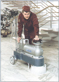 Сегодня мы продолжаем наш разговор о технологическом оборудовании и средствах ухода за натуральным камнем, начатый в номере 47. Напомним, что помочь нам в этом мы попросили кандидата технических наук, доцента и одновременно помощника президента компании «ГРАНУЛ» Николая Николаевича Анощенко и руководителя отдела Вячеслава Борисовича Комарова. Оборудование и инструменты мы с Вами условно разделили на 2 типа. Первый - это станки и ручные инструменты, которые применяют для изготовления изделий. О них мы с Вами подробно уже подробно рассказали. А что это за второй тип? Второй тип - оборудование для ухода за натуральным камнем. Итальянцы, когда первый раз приехали в Россию - это было около 10 лет назад - сказали одну очень примечательную фразу: «Вы, русские - странные люди! Когда вы делаете паркетный пол, то покрываете его лаком, чтобы он сохранялся как можно дольше. И считаете необходимым каждый год этот пол подмазывать и ухаживать за ним. А когда кладете на пол натуральный камень, который в 10 раз дороже паркета, то ходите по нему потом десятки лет, моете какой придется водой и абсолютно не считаете нужным за ним ухаживать. Но ведь камень - он живой, он дышит, он впитывает в себя грязь. Он же не может долго жить без ухода!» И, действительно, у итальянцев весь процесс ухода очень четко отработан. Когда человек приобрел мойку или столешницу из натурального камня - он вложил в неё не малые деньги, рассчитывая, что, так сказать, в ответ мойка прослужит лет 300, а то и более. Но только за счет того, что приобретенное им изделие находится в эксплуатации, внешний вид у него через какой-то период все равно ухудшается, как бы не щадили его при эксплуатации. Ухудшается, прежде всего, полировка. Чтобы придать изделию первоначальный вид, его придется механически переполировывать. И чтобы это пришлось делать как можно позже, необходимо защищать изделие. Чем и как их защищать - это очень важная тема, и прежде чем говорить об оборудовании для ухода за природным камнем, стоит сначала подробно остановиться именно на средствах для ухода. Прочность и долговечность камня бесспорна, а при хорошем уходе его эстетические качества сохраняются из века в век. Но поверхность природного камня «живет» и может изменяться под воздействием окружающей среды - с годами потерять блеск или повредиться. Основным врагом полированного камня является грязь. Поэтому очень важны регулярная чистка и обработка мраморных и гранитных полов специальными составами. Эти препараты призваны возвратить камню первозданный блеск и чистоту юности. В мире есть несколько фирм (в основном это европейские фирмы), которые выпускают специальные препараты для ухода за поверхностью натурального камня. Мы рекомендуем своим клиентам защитные средства, выпускаемые фирмой «BELLINZONI». Почему Вы рекомендуете продукцию именно этой фирмы? На нашем рынке есть аналогичная продукция и очень известных и менее известных, более мелких фирм. Честно говоря, в своей основе все эти средства обладают примерно одними и теми же свойствами (если это, конечно, не подделка). Мы выбрали продукцию «BELLINZONI», поскольку это одна из трех самых крупных и известных мировых фирм, выпускающих такую продукцию. Выпускаемые ею средства проверены многолетней мировой практикой применения. И в их свойствах мы убедились на собственном десятил