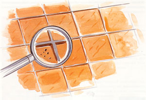 СКОЛЬКО ПЛИТОК ЗАКАЗЫВАТЬ? Для того чтобы ответить на этот вопрос необходимо: Ёзнать размеры поверхности, которую предстоит облицовывать; Ёопределить заранее технику и рисунок укладки (стыковка вплотную или с промежутком в несколько миллиметров между краями плиток, со швом-промежутком, расположенным прямолинейно или в шахматном порядке/зигзагом, с параллельным расположением плиток или по диагонали). Также необходимо учесть, что: Ёдаже в партии плиток первого сорта можно обнаружить несколько дефектных экземпляров. По норме их допускается в партии 1-го сорта до 5%. 2-й, 3-й и 1-ый коммерческий сорта могут иметь еще большее число дефектных плиток. Правда, более низкому качеству соответствует и более низкая по сравнению с 1-ым сортом цена; Ёнекоторая часть плиток уйдет в отходы (будут обрезаны). Объем отходов зависит от характеристик помещения и, в частности, от нарушения геометрии покрываемых поверхностей (изломы, изгибы и т.д.), и от техники укладки (например, диагональная укладка даст больше отходов, чем параллельная); Ёследует оставить после укладки несколько запасных плиток (для возможного ремонта или в качестве образца на случай рекламации). Учитывая все изложенное целесообразно заказывать в среднем на 5-15% больше того объема, который требуется по размерам покрываемых поверхностей. Кроме того, количество плиток на момент заказа нужно подсчитать очень тщательно, т.к. если потребуется дополнительный заказ, может оказаться, что плитки следующей партии не будут абсолютно идентичны плиткам предыдущей партии. Партии разных поставок могут отличаться ещё двумя параметрами - «тоном» и «калибром». Тон - это хроматическая тональность данной партии плиток. При промышленном производстве плиток по причинам технологического свойства практически невозможно добиться того, чтобы все плитки были идентичной тональности и в результате обязательно обнаруживаются небольшие расхождения в цвете (во всём остальном плитки могут быть абсолютно идентичны). Расхождения становятся очевидными лишь при сопоставлении плиток друг с другом. Поэтому по окончании производственного цикла, ещё до упаковки производится сортировка, в ходе которой не только выбраковываются экземпляры с дефектом, но и группируются плитки, однородные по тону. Во многих случаях тон указан буквой, проштампованной на упаковке (например, тон А, тон В). Калибр (или «фактический размер»). По аналогичным ранее названным причинам и особенно при производстве плиток с очень плотной основой на выходе из печи плитки могут отличаться по размерам. В таком случае они также сортируются по партиям одинакового размера с допуском разницы, устанавливаемым нормой. Фактический размер также указывается на упаковке рядом с номинальным для данной плитки: 20х20 cm (W 198mm x 198 mm), где 198 мм и есть фактический размер. Практически аналогично первому такое обозначение: 20х20 cm - Калибр 01. Вот на эти два параметра (тон и калибр) и необходимо обращать самое пристальное внимание при покупке плитки. ЭКСПЛУАТАЦИЯ И УХОД Конечно, пол или облицованная плиткой стена представляют собой весьма прочные поверхности, особенно если сравнивать их с мягкими или легко пачкающимися материалами. Но эта поверхность состоит из плиток и швов и значит она далеко не однородна. А поскольку ухаживать придется как за плитками, так и за швам