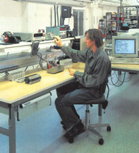 Нельзя не отметить, что коллекции «Подиум» и «Эстрад» прекрасно дополняют друг друга по дизайну и расцветкам. При помощи созвучного сочетания различных цветов выбранную основную тональность пола можно переносить из одного помещения в другое, создавая единое цельное по гармонии напольное покрытие во всех помещениях. Также наши специалисты могут украсить ваше напольное покрытие эмблемой, логотипом или названием Вашей фирмы. В состав объединения «UPOFLOOR» входит предприятие, выпускающее кварцвиниловую плитку, по уникальной, не имеющей аналогов в мире технологии. Этот чудо-материал с одинаковым успехом выдерживает движение тяжелых складских погрузчиков и суету игрушечных машинок в детских, при этом делает их менее шумными. Он сочетает прочность камня и эластичность пластика, поскольку основной составляющей является кварцевый песок, а связующим элементом выступает ПВХ. Благодаря химическому составу и уникальной технологии прессовки кварцвинил сохраняет первоначальный вид исключительно долго. И еще; с точки зрения экологии материал безупречен, его эмиссия близка к природному фону. Монтаж покрытия легок и удобен, его вполне можно назвать скоростным (квалифицированный рабочий за смену укладывает до 200 м2). Поскольку линейные размеры плиток (30х30, 50х50) кратны практически любой поверхности, отходы при укладке составляют максимум 1%. К тому же отпадает необходимость манипулировать тяжеловесными рулонами. В стыки не надо закладывать специальный шнур и обрабатывать швы. «А как же водичка?» - спросит дотошный читатель. Все просто: четко выдержанные размеры плитки обеспечивают очень плотные швы соединения, прочно удерживаемые акрило-дисперсионным клеем. Поверхность плиток обработана полиуретаном, что позволяет покрытию лучше отталкивать грязь. И хотя по износостойкости кварцвинилу нет равных, он, как и любое другое напольное покрытие, требует хотя бы минимального ухода - элементарный коврик у входа, мастика раз в полгода, да и просто нормального человеческого отношения. Кварцвиниловая плитка «Хови» - не новичок на российском рынке, спрос на нее устойчив. К имеющимся в ассортименте видам дизайна и расцветкам (а их ни много ни мало - 88!) прибавилась новая серия «Hovi Contour», где основной акцент сделан на изящные вставные элементы. На «UPOFLOOR» и раньше при помощи водяной резки делали плитки свободной формы, но это была простая геометрия. Теперь же с помощью компьютерных программ, управляющих процессом, появилась возможность сократить затраты на изготовление орнаментов и разнообразить набор аппликаций: это различные по форме завитки, греческие меандры, сатурны, волны, буквы и т.д. Это делается так: одинаковые по размеру, но разные по цвету плитки одновременно прорезают по заданному шаблону на всю глубину. Создается определенный запас разноцветных «оснований» и вкладываемых элементов. А уж как их скомбинировать, заказчик определяет сам. И если кварцвиниловая плитка, в чем-то даже превосходя керамическую, уступала ей в дизайне, то с появлением «Hovi Contour» декоративность этого теплого, приятного материала стала намного богаче. «Елсейв» - это новое, красивое напольное покрытие с защитой от статического электричества незаменимо для электронной промышленности. Равномерная токопроводимость в каждой точке напольного покрытия «Елсейв» обесп