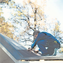 Кровельная медь Следующий вид кровельных материалов, о котором мне бы хотелось рассказать, также имеет многовековую историю. Кровельная медь широко использовалась в отечественном строительстве в XIX и XX веках, однако в советское время ее практически не применяли и лишь совсем недавно медь вновь вошла в гашу жизнь в качестве кровельного материала. Медь - это блестящее серебристое вещество с легким розоватым оттенком, которое приобретает красноватый цвет по мере соприкосновения с воздухом. В течение первого года службы медь из красноватой становится сначала коричневой, а затем матово-черной. Такой цвет имеют ее естественные окислы. С течением времени окислы меняют свой цвет на малахитово-зеленый, но для этого необходимо как минимум 15-20 лет. Существуют искусственные способы патинирования меди, дающие подобный результат сразу, например, еще до укладки, но они достаточно дорогие. Патина является естественным защитным покрытием меди, надежно предохраняющим ее от коррозии и порчи. Можно сказать, что под патиной медь практически неуязвима. Это обстоятельство непосредственно отражается на продолжительности службы медной кровли, исчисляющейся не десятилетиями, а сотнями лет. Медь устойчива в разбавленных кислотах, едких щелочах, морской, пресной питьевой и промышленных водах, сухих газах и других средах. Она прекрасно поддается сварке, что делает ремонт покрытия простым и надежным; при этом используется оловянистая медь. Применяется также испытанный временем способ паяния или лужения, известный с незапамятных лет, когда используется олово. Важно учесть, что наличие механических повреждений не требует замены целого листа или полосы, достаточно лишь вырезать медную заплату и заварить (или запаять) швы. Заплата очень быстро покроется патиной, и различить отремонтированное место будет очень трудно, а при взгляде с земли - невозможно. Природная пластичность меди дает еще одно немаловажное преимущество - медной лентой или листом можно легко покрывать кровли любой, даже самой сложной и затейливой конфигурации, все изгибы преодолеваются очень просто и быстро. А уложенная заново свежая медная кровля в дальнейшем не потребует никакого ухода и наблюдений - ее не надо ни зачищать, ни красить.