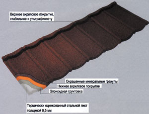 Что такое металлочерепица, думается, никому объяснять не надо. По-моему, это слово смотрит на потенциального покупателя с каждой страницы любого рекламного издания. Наш журнал посвятил металлочерепице огромный обзор в номере 2 за 2000 год. Так что, что такое металлочерепица от «Раниллы» или «Векмана», пожалуй, все уже выучили. То, что эти материалы имеют отечественные аналоги тоже ни для кого не секрет. А вот есть ли какая-то альтернатива этим уже ставшим привычными материалам? Чтобы ответить на этот вопрос пришлось немножко поискать, и наши поиски увенчались успехом. И представьте, у кого мы нашли такие кровельные материалы? У фирмы «ОНДУЛИН» (Франция). Да, да, у той самой фирмы, которая знаменита (не побоимся этого слова) кровельным материалом «ОНДУЛИН», пользующимся большой и, надо сказать, вполне заслуженной популярностью у отечественных покупателей. Вот только известно об этих альтернативных кровельных материалах, к сожалению, очень немногим, прежде всего потому, что фирма «Ондулин» почему-то эти материалы широко не рекламирует. Так выпускает потихоньку, и так же потихоньку продает. Нам показалось, что наши читатели вполне вправе и знать о них и применять (широко или нет - это вопрос второй). А то ведь куда ни повернешься - везде одинаковая металлочерепица или почти одинаковая - на частных домах и общественных зданиях, на магазинах и на ларьках. Будто и нет никаких других материалов. Прям, даже скучно становится. Чтобы все узнать поподробнее, мы обратились прямо в представительство фирмы «Ондулин». Все, что нам там сообщили, мы и предлагаем сегодня Вашему вниманию. Под термином «металлочерепица» в основном подразумевают большеразмерные стальные листы, отштампованные в форме черепичной кровли. Однако, ряд фирм и в том числе «ОНДУЛИН» выпускает так называемую мелкоштучную металлочерепицу. Такой черепицей и является кровельный материал «ОНДУСТИЛ». «Ондустил» - вариант мелкоштучной металлочерепицы (размер листов 139х45 см), представляющий собой как бы блок из 7 «керамических» черепиц. Его получают штамповкой из стального холоднокатаного оцинкованного листа толщиной 0,5 мм. Лист загрунтован с двух сторон эпоксидным составом, поверх которого нанесен высококачественный акрилат, защищенный слоем природного минерального гранулята, уложенного в прозрачный акрилат. «Ондустил» - это очень красивое элитное кровельное покрытие, создающее эффект объемной черепичной кровли. В отличие от лишь окрашенной металлочерепицы, имеющей нечерепичный металлический блеск, покрытый минеральным гранулятом «Ондустил» воссоздает благородную фактуру керамической черепицы. Кроме того, «Ондустил» - это долговечный, прочный, огнестойкий, устойчивый и к жаре, и к морозу материал (долговечность кровли не менее 40 - 50 лет). Покрытие из минерального гранулята является дополнительной защитой от погодных влияний, повышает противопожарные качества кровли, а также значительно снижает шум от дождя.