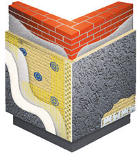 Поскольку толщина штукатурки не превышает 10-12 мм, в этой системе необходимо по соображениям пожаробезопасности применять утеплители из негорючих материалов, например минерало-ватных плит.