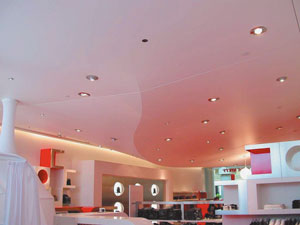 гипсокартонные листы; металлический каркас из холодноформованных гнутых профилей. Подшивной потолок из гипсокартона преимущественно применяется в помещениях с неровностями в плоскости перекрытия не более 20 мм. Сборный гипсокартонный потолок может устанавливаться в жилых, общественных и промышленных зданиях всех степеней огнестойкости, различной этажности и конструктивных схем, возводимых в любых районах страны; в помещениях с относительной влажностью воздуха до 70 % и температурой не ниже +10 C при отсутствии агрессивной среды. Второй технологический способ создания многоуровневых потолков - натяжные потолки, представляющие собой тонкую пленку или ткань разнообразных цветов и фактуры, натягиваемую на специальный каркас (багет) который закрепляется на потолке или по периметру стен. Натяжные потолки можно устанавливать в помещениях любой конфигурации, под любым наклоном или даже в разных плоскостях, делая резкие или плавные переходы из одной плоскости в другую, создавая арки, своды и шатры. Интересный декоративный эффект получается при использовании в многоуровневых натяжных потолках полотен разного цвета и фактуры.