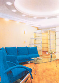 Многоуровневый потолок помогает также решить проблему низких потолков. Специалисты по интерьеру предпочитают использовать следующий прием: если уровень потолка в прихожей опустить, а в гостиной сохранить прежним, при входе в нее кажется, что пространство расправлено. При этом основной уровень потолка в гостиной дополнительно выделяют с помощью подсветки, светлых оттенков потолочных обоев и красок, а также текстурой. Довольно часто очертания многоуровневых потолков подчеркиваются полом. Это могут быть, например, подиум, или сочетание различных материалов для пола, или материалы разных оттенков. Однако при устройстве многоуровневых потолков уменьшается высота помещения. Поэтому такие потолки не рекомендуется устанавливать в помещениях высотой менее 3-х м. Даже если потолок идеален, многоуровневый потолок можно использовать просто в качестве украшения и дополнения интерьера. Применяют самые разнообразные формы конструкций данных потолков: геометрические, гнутые, фантастические сочетания кривой линии и треугольника, перепады уровней относительно базового