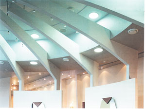 Следует сказать, что при устройстве данных потолков освещение занимает далеко не последнее место и расположить правильно источники освещения довольно не просто: светильники следует спрятать, не заглубив их, в противном случае света будет недостаточно. Работая с многоуровневыми потолками, следует учитывать также дизайн мебели, стен, полов. Приемов и идей декорирования потолка, создания из него поистине шедевра, несущего самостоятельную художественную нагрузку много. Но не только ради оригинальности и красоты потолки делаются нескольких уровней. Иногда это продиктовано необходимостью спрятать проходящие за ним каналы вентиляции, благодаря которым «дышит» вся квартира. Такие системы нельзя «зашивать» намертво, они должны быть доступны для периодического обслуживания. А в комнаты кондиционер выходит не привычными навесными блоками, уродующими помещения, а изящными, утопленными решетками. И еще одна, не менее важная, функция многоуровневого потолка: необходимость «спрятать» несущие конструкции здания, ведь расширяя пространство и раздвигая стены, нужно помнить, что несущие конструкции, представляющие собой своеобразный скелет здания, должны оставаться нетронутыми.