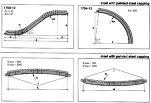 Вторая из систем этой серии "Изогнутый сортовой прокат". Это изделия, позволяющее создать специальный волнистый потолок. Основное отличие в конструкции изогнутых направляющих, в которых затем крепятся специальные изогнутые элементы (плитки) потолка. Примеры: 1-S-форма; 2-Вогнутый; 3-Выпуклый; 4-Вогнутый Радиус R min 200 мм, максимальные по запросу. Прямые части для S- формы = min 150 мм. По заказу может быть изготовлена подвесная система с другими радиусами изгиба, а так же изогнутый сортовой прокат с шириной полки 15 и 35 мм.