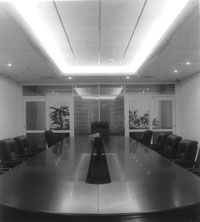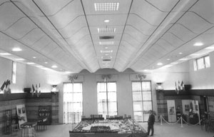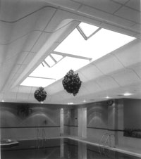 Подвесные потолки уже стали неотъемлемой частью интерьера современных зданий и должны быть как функциональными, так и эстетически привлекательными. Применение подвесных потолков позволяет: Сделать невидимыми, но при этом доступными, различные инженерные системы и коммуникации - вентиляционное и тепловое оборудование, электрические и компьютерные разводки и пр.; Потратить в них модульные осветительные приборы; Ё Устанавливать в них вентиляционные решетки и размещать на них головки спринклерных систем пожаротушения; Ё Нивелировать рельефный базовый потолок и. наоборот, создать рельефный подвесной потолок при плоском базовом. Поэтому чрезвычайно важно относиться к подвесным потолкам как к ИНТЕГРАЛЬНЫМ СИСТЕМАМ, т.к. применение новых подвесных потолков позволяет в ряде случаев существенно улучшить условий жизни и отдыха. К таким потолкам относятся недавно появившиеся на Российском рынке акустические потолки фирмы Ecophon, с которыми мы познакомим Вас в этом обзоре. Фирма Ecophon (Швеция) основана в 1958 году. Сейчас Ecophon работает во всем мире. Ecophon действует на российском рынке уже около 10 лет и в течение этого периода объем продаж товаров фирмы в Россию и другие страны СНГ стабильно возрастает. Стратегией фирмы Ecophon является развитие полностью завершенных потолков, включающих системы освещения и подвешивания, что помогает избежать проблем при их установке. Улучшение условий жизни и отдыха достигается через: ЁКонтроль над акустикой, сокращение шума до комфортного уровня и улучшение общения между людьми; ЁТермоизоляцию, что позволяет сократить расходы на отопление; ЁВысокую степень светоотражения и диффузии, сокращающие потребление электроэнергии; ЁПрочность и долгий срок службы, меньшее количество замен и ремонтов, выливающиеся в снижение расходов по эксплуатации. Акустика. В большинстве помещений "хорошая акустика" означает возможность поглощения отраженного звука или "эха" в рамках одной комнаты. Промежуток времени, за который звук затихает или ослабляется. называется "временем реверберации". Оно может достигать 4 - 6 секунд в бассейнах и спортивных залах. На рабочем месте, в офисе оно не должно превышать 0,4 - 0,6 секунд. Отделка помещений звукопо-глощающим материалом значительно снизит время реверберации. Чтобы избежать эффекта "порхающее эхо" можно также использовать звукопоглощающие стеновые панели. Поглощение звука. Звукопоглотители сокращают время реверберации и уровень звукового давления путём предотвращения отражения звука окружающими поверхностями, снижая его и в смежных помещениях. Звукопоглощение измеряется при помощи коэффициента поглощения, который варьируется от 0 до 1. Коэффициент поглощения измеряется при помощи комнатного метода в единицах С4236 по шкале Американ-ского общества по испытанию материалов, и соответствует мировому стандарту ISO 354. Классы поглощения распределяются по коэффициен-там звукопоглощения в частотных пределах 250 - 4000 Гц. Классификация поглощения располагается от А до Е, точка А является наивысшей. Это вычисляется как время реверберации для всего помещения. Значение коэффициента поглощения звука (КПЗ), выраженное как отдельное значение, ближайшее кратному 0,05 для поглотителей, является средним арифметическим коэффициентом октавного диапазона от 250 до 2000 Гц. Покраска изделий нас