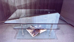 МЕБЕЛЬ ИЗ СТЕКЛА На стекло, как на материал изготовления мебели, специалисты по декоративно-прикладному искусству обратили своё внимание на рубеже 19-20 веков. И сейчас уже трудно представить современные интерьерные решения без использования предметов из стекла. Мебель из стекла изящна и одновременно функциональна. Она способна элегантно и воздушно существовать в любой среде и обстановке. И такой хрупкий на вид материал как стекло при умелом объединении полета дизайнерской мысли и надлежащей технологии изготовления превращается в удивительно прочные объекты, обладающие одновременно качеством, изяществом, красотой и надежностью. Чего только нельзя найти среди предметов мебели из стекла: барные конструкции и обеденные столы, столы для переговоров и гостиной, консоли, подставки под телевизор и радиоаппаратуру, журнальные столы и угловые подставки, комоды и тумбы, цветочницы. Всего, пожалуй, и не перечислишь. Техническая информация предоставлена НПЦ «Стекло и Стеклоизделия»
