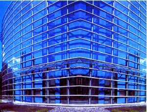 Закаленное стекло Закаленное стекло применяется там, где необходимо безопасное стекло, а также для остекления окон и перегородок, дверей, ограждений балконов, лестничных маршей и т.д., а также при производстве изолирующих стеклопакетов или ламинированных стекол. Закаленные стекла изготавливают из листов неполированного, полированного или узорчатого стекла на специальных закалочных установках. При необходимости в стекле предварительно делают требуемые вырезы, отверстия, обрабатывают кромки, потому что готовые закаленные стекла нельзя резать, сверлить и подвергать другим видам механической обработки. Для закаливания стекло разогревают выше температуры размягчения, а затем быстро охлаждают в струях воздуха. При охлаждении первыми затвердевают поверхностные слои стекла. В них при остывании внутренних слоев возникают остаточные напряжения сжатия. Эти напряжения обеспечивают механическую прочность и термостойкость стекла и приводят к тому, что оно разрушается на более мелкие фрагменты без острых углов. Прочность закаленного стекла на изгиб и удар в 5-6 раз больше прочности обычного стекла, при этом и термическая стойкость его существенно выше. Разбитое закаленное стекло распадается на мелкие острые осколки. Это регламентировано требованиям стандартов качества - при контрольном разрушении острым молоточком массой 75 граммов закаленные стекла должны иметь не менее 40 осколков в квадрате размерами 50х50 мм или 160 осколков в квадрате 100х100 мм. Поэтому оно относится к "безопасному" типу стекла. Наиболее уязвимым местом закаленного стекла являются его кромки. При монтаже конструкций необходимо оберегать его торцы от ударов, царапин и других повреждений. Светопропускание прозрачного закаленного стекла составляет не менее 84 процентов. Солнцезащитное стекло Солнцезащитное стекло - это стекло, уменьшающее пропускание солнечной радиации во всем спектре длин волн или в его части. Это обычно тонированное или рефлективное стекло. Оно применяется для остекления окон, а также солнцезащитных устройств - козырьков, вертикальных экранов и т.д. Наиболее уместно применение в зданиях с активным использованием кондиционеров. Солнцезащитные стекла либо отражают, либо поглощают излучение. Теплопоглощающие стекла получают введением в стекломассу специальных добавок, окрашивающих ее в зеленовато-голубоватые или серые тона. Такие стекла пропускают 65-75 процентов света, а инфракрасных лучей - всего 30-35 процентов, причем их способность пропускать и поглощать лучи (при едином химическом составе) зависит от толщины листа. При высоком коэффициенте поглощения света "темные" теплопоглощающие стекла могут сильно нагреваться (на 50-70 градусов выше окружающей среды), поэтому их не рекомендуется использовать в наружном остеклении. Их также нежелательно подвергать неравномерному нагреву или охлаждению. Второй вид стекол, которые призваны защищать от солнца - окна, с прозрачными для видимых лучей спектра тонкими окисно-металлическими, керамическими или полимерными покрытиями. Данные покрытия наносят на одну из поверхностей обычного бесцветного стекла. Такие стекла тоже поглощают часть солнечного инфракрасного излучения, но нагреваются значительно меньше, а их светотехнические характеристики мало зависят от толщины листа.