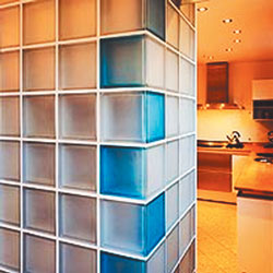 Благодаря возможностям, открывающимся перед дизайнерами с появлением все более новых технологий, стеклоблок становится одним из самых поразительных материалов для творцов интерьера. Для того чтобы регулировать количество света, которое просачивается сквозь стекло «кирпича», делать изображение расположенных за ним предметов или четким, или, при желании, расплывчатым и еле уловимым, производители придают поверхности материала разные свойства. Рифленая перегородка обладает легким рассеивающим эффектом, поэтому делает помещение загадочным и романтичным. Такими блоками следует воспользоваться при отделке ванной комнаты или спальни. Бесцветные фактурные блоки называют весьма поэтично, например «Волна», «Двойная волна», «Капля». Абсолютно ровная прозрачная поверхность, возможно, у кого-то вызовет ассоциации с аквариумом. Но стены из стекла как нельзя лучше подойдут для внутреннего обыгрывания пространства небольших по площади помещений. Матовая поверхность пропускает только половину светового потока, поэтому создает эффект защищенности, например, одной из наружных стен дома. Такое ощущение усилится, если поверхность выбранного материала будет матовой с обеих сторон. Сквозь блоки, изготовленные из цветного стекла, проходит до 75 % солнечного потока, при этом лучи окрашивают стены в любые выбранные заказчиком тона. В таком помещении и у хозяев, и у гостей хорошее настроение сохранится даже в самое невеселое время года. Стену между гостиной и кухней можно выложить из полностью прозрачных стеклоблоков, а в интерьер детской органично впишется мозаичный набор из красных, зеленых и желтых кирпичиков. Скругленные формы волнообразной перегородки, зонирующей пространство студии — разделяющей его на спальню и столовую, придадут помещению одновременно воздушность и защищенность. Барный уголок или зона для чайной церемонии будут выглядеть уединенными и интимными под защитой стенки из матовых блоков, которые станут и пропускать свет, и скрывать происходящее от случайного взгляда. И цветные, и матовые, и рифленые образцы способны менять свои внешние свойства в зависимости от дневного или электрического света, это к тому же не позволит хозяину дома заскучать в стеклянных стенах. Смело экспериментируя с данным материалом, современные производители постепенно отодвигают на второй план его основную функцию — пропускать свет и подчеркивают другую — декорировать, украшать, удивлять и радовать глаз. Из новых, инкрустированных различными способами стеклоблоков можно составлять панно с пейзажами, натюрмортами, абстрактными картинами. С помощью стеклянных квадратиков удается создать имитацию камня, а также других модных материалов. Мелкие голубые шарики — рисунок, изображающий пузырьки воздуха или капли воды на поверхности, — это отличное решение для отделки ванной комнаты или бассейна, сауны. Эксклюзивные стеклоблоки со вставками картинок злаков, цветов, морской гальки, глубоководных рыб и животных, фруктов и птиц могут стать прекрасным дополнением необычного интерьера вашего дома, оформленного опытным дизайнером. Еще совсем недавно в жилых домах и квартирах стеклоблоки-витражи применяли достаточно редко. Из-за сложной технологии изготовления их стоимость была высока, ведь каждый образец такого материала уникален и 