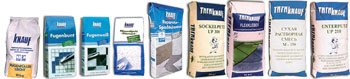 Следующая большая группа - смеси для специальных работ. В первую очередь это гидроизоляционные смеси. Они являются альтернативой для битумной гидроизоляции. Это, так называемые, гидроизолирующие шламы, и обмазочная гидроизоляция, которая наносится с помощью тонкого шпателя или кистью. Их используют и для гидроизоляции бассейнов и для гидроизоляции кровли. Далее в этой группе - это теплоизолирующие смеси для утепления фасадов, смеси для акустической защиты, смеси для радиационной защиты, реставрационные смеси, тампонажные и т.д. Практически все производители придерживается именно такой классификации. И в группе клеев у каждого есть определенный ассортимент клеев, так же как в группе штукатурок, или в смесях для устройства полов. Только у одного более развито производство одной группы смесей (и, следовательно шире их ассортимент), у другого - другой. И вся разница только в этом. А производителей сухих смесей тоже можно как-то «классифицировать»? Разбить присутствующих на рынке производителей на классы и группы довольно трудно. Если классифицировать их по отношению к производству, то придется выделить один ряд фирм. Если классифицировать по ценам на продукцию, то ряд будет совсем другим, по объемам выпускаемой продукции третьим, по ассортименту четвертый и так до бесконечности. Возможно, правильнее всего попробовать классифицировать по соотношению цена-качество. Но если рассматривать это соотношение, то даже у многих крупных и известных производители, таких как «Глимс», этот показатель может оказаться не особенно хорошим. По группе клеев у «Монолита», «Старателей» и «Юниса» это соотношение будет лучше, чем у «Глимса». Но это может определяться и другими затратами, например, более развитой системой контроля качества, также удорожающей продукцию. Я бы выделил среди фирм Московского и Питерского региона приблизительно один уровень производителей, не вдаваясь в соотношение «цена-качество». Это такие фирмы, как «Глимс», «Монолит», «Старатели», «Юнис», «Петромикс», «Отли». В принципе, это производители одного уровня. Просто фирма «Глимс», которую как бы уже принято ставить чуть выше остальных, одной из первых создала достаточно широкую гамму сухих смесей и вышла на рынок сразу с широким ассортиментом продукции. Особняком стоит «Тиги-кнауф» - это фирма, которая на нашем рынке практически вне конкуренции в области производства сухих смесей на гипсовой основе (им принадлежит 85-90% рынка гипсовых смесей в России). Это мощный концерн, который сделал в России очень хорошую политику. Он принес с собой хороший подход к производству и высокое качество продукции. Плохо, что это не чисто российское предприятие. Но у них тоже есть определенные проблемы с увеличением объемов выпуска продукции. Показательно, что фирма стала настолько большим авторитетом, что начинающие российские производители сухих смесей на упаковках своей продукции пишут: «Сухая смесь типа «Фугенфюллера» фирмы Тиги-кнауф». Совсем недавно встретилась на одной из упаковок такая надпись «Смесь типа клея Р23 «Монолит». И это даже хорошо, что появляются такие немножко курьёзные надписи. Хорошо, потому что новая молодая фирма, выпуская на рынок новую сухую смесь, начинает себя сравнивать с «более старшими товарищами». И равняться на них. И даже, если хотите, соревноваться. Т