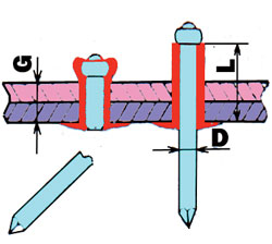 Действительно, все кажется просто. А представьте себе ситуацию, что Вам понадобилось согнуть металлический лист в «трубу» и закрепить полученную «конструкцию» в таком состоянии. Можно, конечно, сделать как положено кровельный шов, да вот только долгое это дело и довольно муторное. Сделать заклепочное соединение? Ни «наковаленка», ни молоток в трубу не помещаются. Или другая ситуация. Понадобилось Вам на крыше родного дома соединить два листа кровельного железа, например, на коньке. Кровельный шов тут не всегда подходит, и склепать два листа прямо на крыше - тоже дело не простое. Выход один. Снимать оба листа, клепать на земле, а потом полученную конструкцию затаскивать обратно на крышу. В общем наработаешься ... А между тем, выход в каждой из перечисленных ситуаций есть. И довольно простой. Подсказал его нам один наш старый знакомый, проработавший на стройке много лет. Во время одной из наших с ним бесед он рассказал, как пытался изобрести автоматический расклепыватель. Долго ломал над проблемой голову. Придумал полую заклепку (тогда таких еще не было), в неё вставлялся стержень с головкой. Придумал как сделать «пассатижи», которые этот стержень должны были вытаскивать и при этом деформировать заклепку. Все продумал, сделал чертежи и даже на завод принес. Вот только дальше этого дело не пошло. Не стали с ним разговаривать. «Ну, ты и придумал. Заклепка полая (где ж мы тебе такую возьмем?). Стержень вообще чуть ли не весь идет на выброс. Да разве можно металлом бросаться? Иди-ка ты со своей идеей...» Пришлось уйти. И идею вместе с чертежами и самыми светлыми надеждами на облегчение труда «похоронить». И вот недавно заходит он в обычный хозяйственный магазин и обнаруживает на прилавке расклепыватель, правда не отечественного, а германского производства. Обрадовался, что мечта его наконец исполнилась и приобрел. Вместе с набором заклепок. Спрашиваем: «Вот так просто зашел в первый попавшийся магазин и купил?» Он отвечает: «Именно так. Да они в любом магазине есть, только на них почему-то никто внимания не обращает.» Нам тоже стало любопытно, что же это за такой «агрегат» - расклепыватель. И мы отправились, правда не в ближайший магазин, а на выставку «РОССТРОЙЭКСПО», что на Фрунзенской набережной (ну нет у нас возле редакции магазина). Первым попавшимся «хозяйственным магазином» оказалась небольшая пристройка к павильону №5, где продавались инструменты и разные полезные в хозяйстве мелочи. Туда мы и зашли. Спрашиваем: «Есть расклепыватель?» «Пожалуйста! Вам профессиональный или любительский?» И достают сразу два. По внешнему виду и тот и другой «агрегат» действительно похож на пассатижи. Только в рабочей головке кроме отверстия для стержня заклепки ничего нет. Один (профессиональный) побольше и помощнее и рабочая головка у него не поворачивается, второй (любительский) не такой большой, зато рабочая головка у него вращается на 360°. И мы разговорились с продавцом магазина. Любительский вариант расклепывателя от профессионального ничем, кроме величины создаваемого усилия, не отличается. Поэтому с помощью профессионального можно работать как с алюминиевыми заклепками, так и со стальными. Усилия любительского расклепывателя хватает только на алюминиевые заклепки. И те и другие заклепки имеют вид, показанный на рисунке. Работать с самим инстр