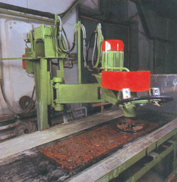 Сегодня мы продолжаем наш разговор о натуральном камне, начатый в номерах 45-47, и предлагаем рассмотреть то технологическое оборудование, с помощью которого создаются все те шедевры архитектуры и дизайна, о которых мы пытались и пытаемся рассказывать. Помочь нам в этом мы попросили сотрудников уже знакомой Вам по предыдущим обзорам компании «ГРАНУЛ». Итак, сегодня мы беседуем с кандидатом технических наук, доцентом и одновременно помощником президента компании «ГРАНУЛ» Николаем Николаевичем Анощенко. Думаю, что мы не «откроем Америки», если скажем, что секрет создания красивого интерьера процентов на 70 определяется тем инструментом, который был использован для его создания. И какими бы умелыми ни были руки его создателей, какой бы красивый камень Вы не использовали, без хорошего специализированного оборудования все равно ничего не получится. В общем-то, все правильно, но не совсем. То оборудование для камнеобработки, о котором мы с Вами говорим, появилось только в последние десятилетия. Но ведь и до его появления умелые руки мастеров создавали каменные шедевры. Вот только на их создание тратились годы, десятилетия, а иногда и века. И потому, нельзя сказать, что без применения современного оборудования невозможно совсем ничего создать. Создать можно, вот только на это придется тратить те же годы и десятилетия. Хорошее оборудование и призвано прежде всего ускорить процесс создания изделий и интерьеров, а так же упростить его. В том, что оно позволяет достичь и того и другого мы убедились на собственном опыте. Когда наша компания только начинала свою работу, то над созданием элементарной столешницы трудились сразу трое рабочих. Трудились иногда не один рабочий день. Сейчас ту же работу выполняет один, и делает её меньше чем за одну смену. Вот, что значит хорошее современное оборудование. Тогда давайте расскажем о нем поподробнее на примере того оборудования, которое применяет и предлагает на рынке Ваша фирма. Разговор о современном камнеобрабатывающем оборудовании наверное стоит начать с промышленного оборудования. Конечно, о современных высокопроизводительных поточных линиях для производства, например, облицовочной плитки мы говорить не будем, поскольку это несколько выходит за тематику Вашего журнала. А вот о станках, которые с успехом могут использовать небольшие фирмы, занимающиеся обработкой камня, поговорить стоит. Такие отечественные станки производил ОАО «Экспериментальный завод» в г. Реж Свердловской обл., а с 2000 года производит завод «ЦЕНТРОМАШ» - одно из предприятий, входящих в компанию «Гранул». Станки «ЦЕНТРОМАША» являются улучшенными станками, разработанными конструкторским бюро Воскресенского камнеобрабатывающего завода компании «Гранул» и эксплуатируются с 1998 г. Предназначены они для небольших производств со средними объемами. Для небольших предприятий, технологический процесс изготовления изделий у которых начинается с распиловки каменных блоков, можно рекомендовать простой распиловочный станок. Он позволяет распиливать небольшие блоки (шириной до 600 см.) Блок распиливается на заготовки толщины от 20 до 100 мм. (Далее они окантовываются и распиливаются на плиты необходимой длины и ширины: 30х30, 40х40, 60х60, 30х60 мм и т.д.). На станок может устанавливаться от одного до четырех дисков с расстоянием между 