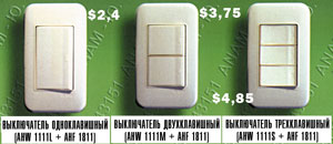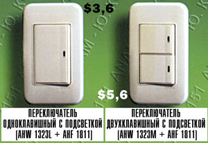 Второй особенностью изделий "Анам" является то, что все они рассчитаны на работу в сети с напряжением 250 В при рабочем токе до 15 А. То есть любой из выключателей рассчитан на нагрузку в 3,7 кВт. Это более чем приличная нагрузка. (Напомним, что отечественный стандарт предусматривает напряжение 220 В и максимальный ток 6 А.) Все они изготовлены из пластокерамики - это материал, абсолютно не подверженный выгоранию при высоких температурах, и выпускаются одного цвета - цвета слоновой кости. Когда мы занимались сертификацией изделий "Анам" в "Ростесте", то с ужасом смотрели каким же жестким испытаниям там подвергаются электроустановочные изделия. И эти испытания изделия "Анам" выдержали с честью и получили сертификат "Ростеста". В выключателях применена подсветка в виде светодиода, указывающего место положения выключателя в темное время суток. Выключатели снабжены светодиодом красного цвета. Использование двойных накладок позволяет максимально расширить ассортимент изделий. Возможны различные комбинации выключателей. То, что выключатели снабжены подсветкой, является одним из преимуществ выключателей "Анам". В темноте такой выключатель найти довольно легко. В серии есть одно- , двух-, трех-, четырех- и пятиклавишные выключатели. Для тех, кому почему-то не нравится подсветка на выключателях, есть более дешевые изделия без светодиодной подсветки. Такие выключатели дешевле на 10-15%, но функционально ничем не отличаются. Розетки выполнены по евростандарту для включения электрических вилок с диаметром до 5 мм. Отдельные модели розеток имеют заземляющий контакт. Розетки с брызгозащитными крышками и резиновыми прокладками предназначены для установки в помещениях, где есть вероятность попадания брызг на розетку. В серии есть и типы розеток со специальной защитой от детей. Эти розетки оборудованы специальными шторками, с поворотным клапаном, которые электровилка раздвигает легко и свободно, но вот засунуть гвоздь или палец в одно из отверстий ребенку вряд ли удастся. Кроме обычных розеток и выключателей существует еще изделия, называемые переключателями. Эти изделия сейчас пользуются у российского потребителя довольно высоким спросом. Для чего они нужны? Переключатели - изделия, позволяющие включать и выключать освещение с двух мест (снабжены зеленой подсветкой). Представьте себе длинный коридор в двух концах которого установлены переключатели. Вошли с одного конца - свет включили. Прошли весь коридор - вторым переключателем выключили. Согласитесь, что это гораздо удобнее, чем один выключатель на такой коридор. В серии есть изделия, совмещающие в себе сразу две функции - выключателя и переключателя. Значительную часть в ассортименте занимают различные устройства, начиная от ставших уже привычными светорегуляторов и кончая электронными таймерами. Электрическая схема светорегуляторов позволяет плавно изменять освещенность помещения. Отдельные модели светорегуляторов производятся в комбинации с выключателем и снабжены подсветкой. Максимальная мощность нагрузки светорегулятора 1000 Вт. Эти изделия незаменимы для лестничных клеток, коридоров и т.п. мест, и являются альтернативой переключателям. С помощью двух переключателей, как мы уже говорили можно включать и выключать освещение с двух сторон коридора (лестницы). Таймер может замен