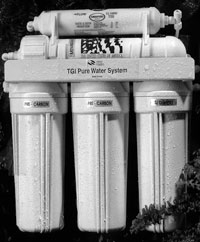 Водоочистные установки, основанные на системе обратного осмоса, технически сложны, и ни одно из Российских предприятий не бралось за их производство. Почему же Вы взялись? Водоочисткой в нашей стране всегда занималось государство и его структурные подразделения, – водоочистные станции. Частник об этих проблемах никогда не задумывался. С наступлением «эры капитализма» эти станции оказались на минимальном финансировании или совсем без него. Сознание людей быстро стало трансформироваться в соответствии с основным принципом капитализма – «каждый сам за себя». Вопрос водоочистки теперь каждый стал решать для себя индивидуально. С усилением коттеджного строительства этот вопрос еще более обострился – если уж в относительно крупных населенных пунктах нет возможности решить проблему водоочистки, то кто же будет решать эту проблему в небольших коттеджных поселках, кроме самих владельцев коттеджей. Вот и занимаются они этим каждый на свой страх и риск. Конечно же, институт ВОДГЕО, как основной отраслевой институт, не мог спокойно смотреть со стороны как проблемы водоочистки пытаются решить, например предприятия оборонной промышленности в рамках конверсии и т.п. Проблемой мембранной очистки ВОДГЕО занимался уже давно и накопил в этом вопросе достаточно большой опыт. Но еще 10 лет назад установка обратного осмоса была весьма тяжеловесной, она выполнялась из нержавеющей толстостенной стали т.к. работала при давлении 50 атм. и естественно ни о каком бытовом применении тогда и речи идти не могло. За несколько лет техника как отечественная, так и зарубежная так шагнула вперед, что это можно приравнять к эволюционному скачку. Как сами мембраны, так и технология очистки воды, основанная на их применении настолько удешевились, что не вернуться к вопросу об их бытовом применении стало просто грешно. Ведь сейчас установка, работающая при давлении 5 атм. стала намного компактнее и даже ажурнее. Институт внес свой вклад в развитие технологии мембранной очистки, и за создание представленной в сегодняшнем обзоре установки группа разработчиков получила Государственную премию. О том, как создавалось производство очистных установок рассказывать не стоит, но к данному моменту оно уже успешно функционирует. Поскольку взвалить все проблемы, возникающие при эксплуатации мембранных водоочистных установок нельзя переложить на плечи потребителя (это процесс достаточно сложный), то параллельно с налаживанием производства отлаживалась сервисная сеть, которая взяла на себя обслуживание выпускаемых установок. Таким путем обычно идет любое производство в цивилизованных странах – просто это единственное оптимальное решение. Мы не стали изобретать, как это сейчас принято «свой Российский путь», пошли по дороге, которой «идут все порядочные люди». В результате удалось создать и производство, и сервис. И мы думаем, что наши покупатели на нас за это не в обиде. И все-таки, почему же именно системы обратного осмоса? В Америке капитализм, как известно, развился значительно раньше, чем у нас, видимо, поэтому и проблемы связанные с бытовыми фильтрами американцы прошли значительно раньше, чем мы. Таблица, приведенная в обзоре, взята из научно-популярной книги, выпущенной в Америке сравнительно недавно. В этой книге обобщается накопленный опыт использов