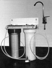 Еще две модели фильтров, выпускаемых фирмой "МЕТТЕМ-Технологии" относятся к классу "IN-LINE", т.е. встраиваются в систему подводки воды с выводом на мойку отдельного крана для питьевой воды. Сами фильтры крепится на стене под мойкой. Здесь используется несколько методов очистки. Во-первых, это, естественно, механическая очистка (без нее не обходится ни один фильтр). Это позволяет отсеять механические нерастворимые частицы (например, ржавчину со стенок водопроводных труб). Второй метод - сорбция с помощью активированного угля. Кроме того, применяется удаление ионов тяжелых металлов с помощью ионообменных смол, а также тонкая фильтрация через материалы с размером пор около 1 мкм (мкм, или микрон - одна миллионная часть метра). Отличия между моделями C1 и C2 состоят в том, что у C1 имеется один комбинированный патрон, а у C2 - два патрона (один - предфильтр и ионообменная смола, второй - тонкий фильтр и сорбент), и поэтому ресурс у них разный. Фильтры подсоединяются к водопроводу с помощью специального тройника с вентилем. В конструкции фильтра используются как детали и материалы отечественного производства, так и импортные комплектующие. В фильтре используются сменные кассеты отечественного и импортного производства - фирм МЕТТЭМ-Технологии (Россия), КХ Industries Inc. (США), Water Filter s.r.1. (Италия). БАРЬЕР IN-LINE C1. Эффективность очистки: Ёот механических загрязнений (твердые частицы 1-2мкм/ замутненность, ржавчина) >99,96%; Ёот активного хлора > 95%; Ёот тяжелых металлов (свинец) > 90%; Ёот микроорганизмов > 99%; Ёэффективно очищает от органических и хлорорга-нических соединений, устра-няет неприятные запахи и привкусы.